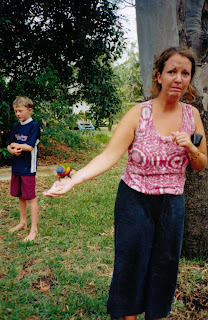 This incident also reminds me of one of my favourite photos of all time. My friend Gemma went travelling years ago and when she showed me and Gayna her photos we absolutely howled at this one. She's also okay about me sharing this here. Of course, if there WAS a picture of me aged 10 with a bird fascinator on, then I would post that too. How sad that there's not... (ha ha!)